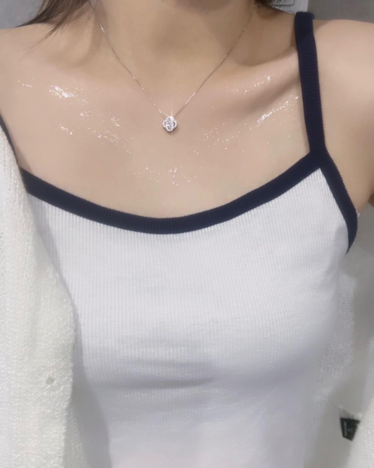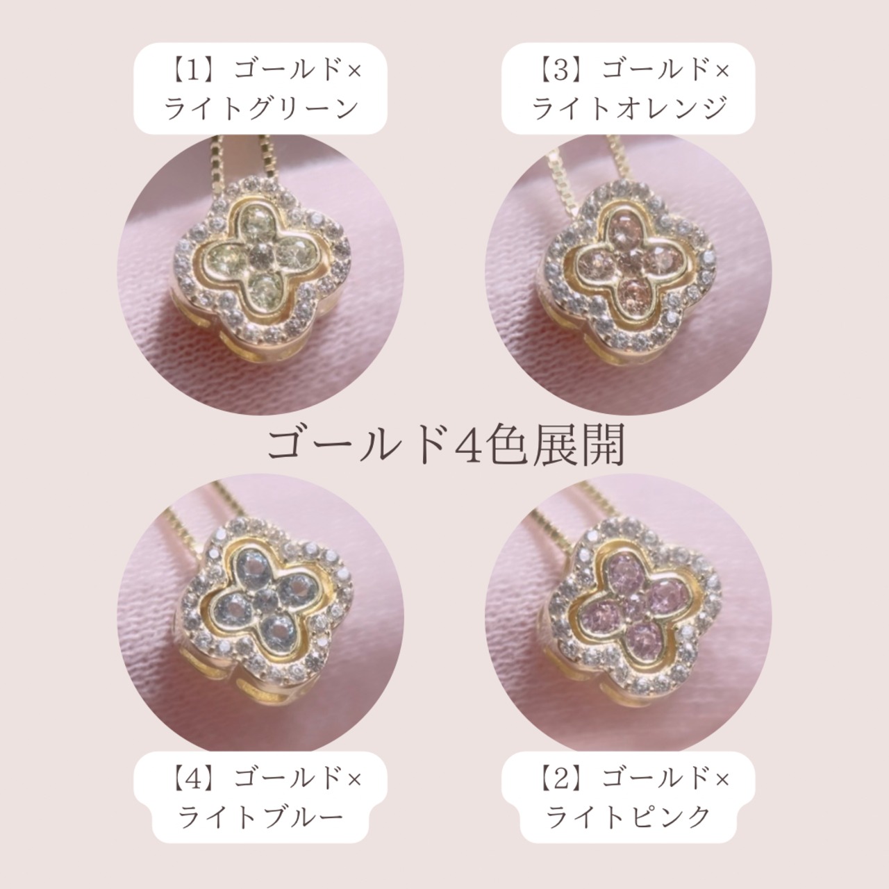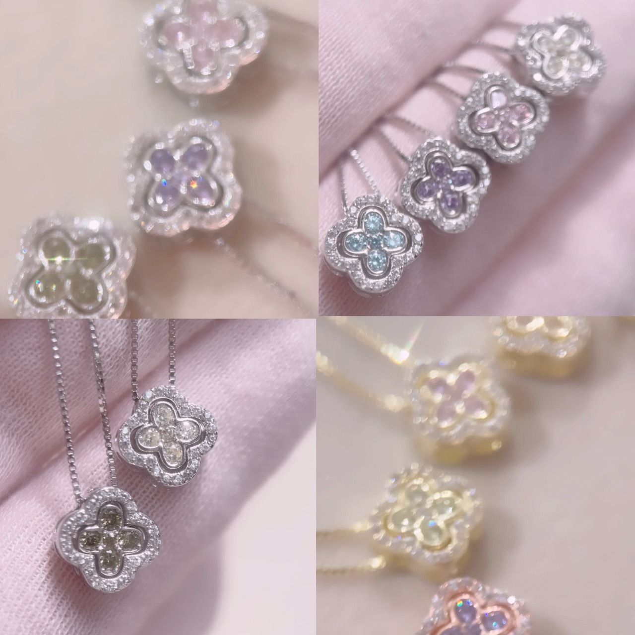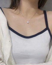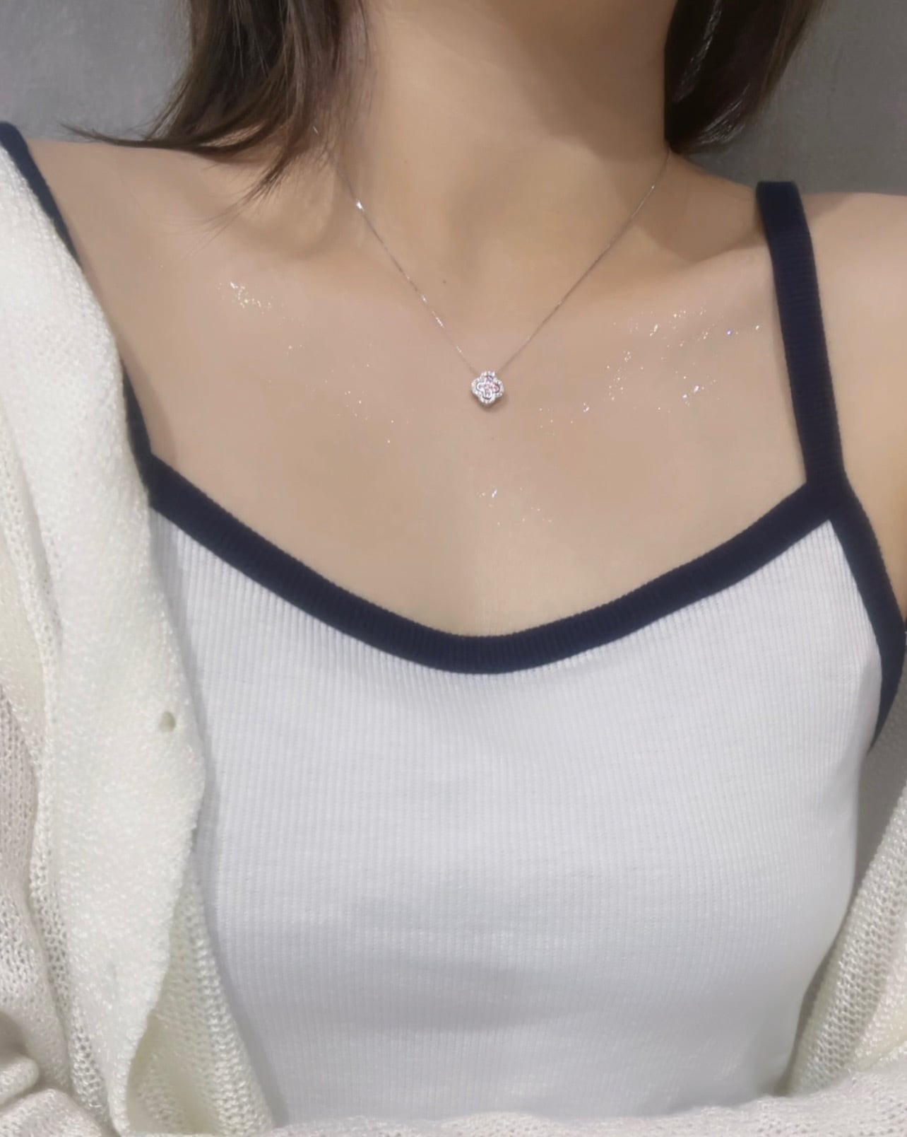 小さなクローバーモチーフにジルコニアが施された美しいネックレスです。肌に優しく、日常から特別な日まで幅広くご使用いただけるスキンジュエリーとしておすすめです。輝きを放つデザインで、シンプルながらも存在感があります。