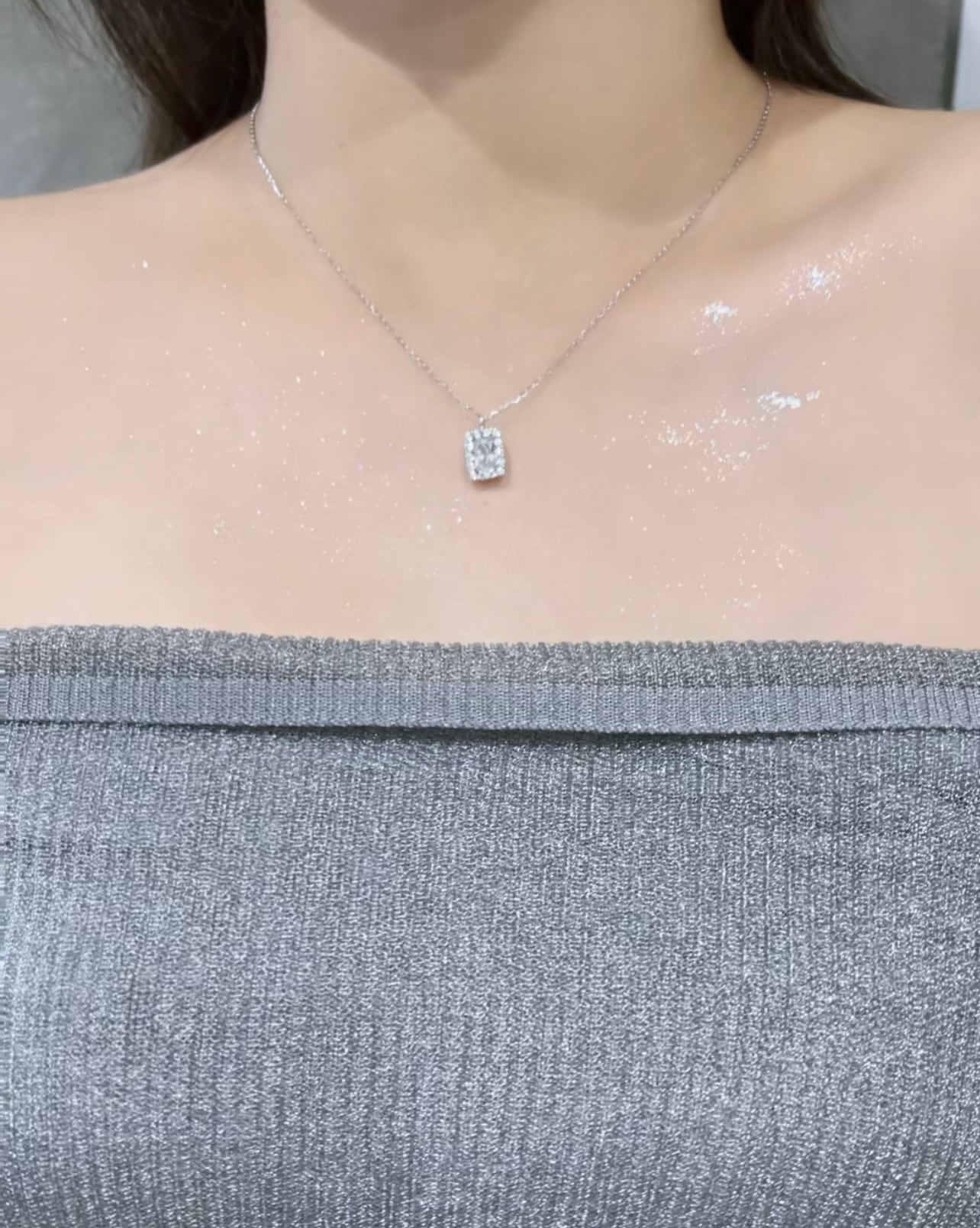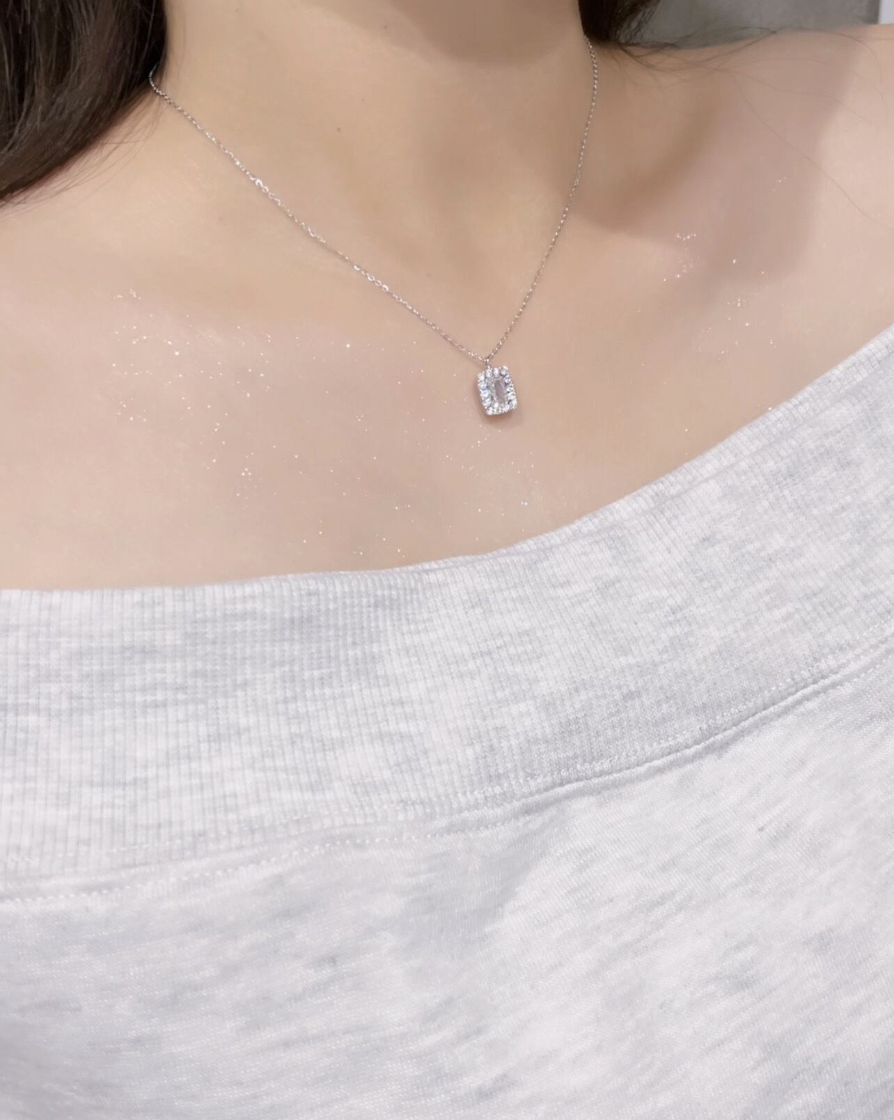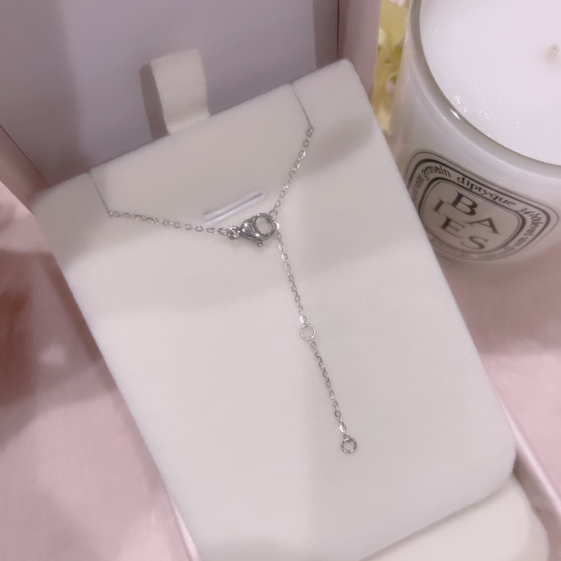 ジルコニアが施された美しいネックレスです。肌に優しく、日常から特別な日まで幅広くご使用いただけるスキンジュエリーとしておすすめです。輝きを放つデザインで、シンプルながらも存在感があります。