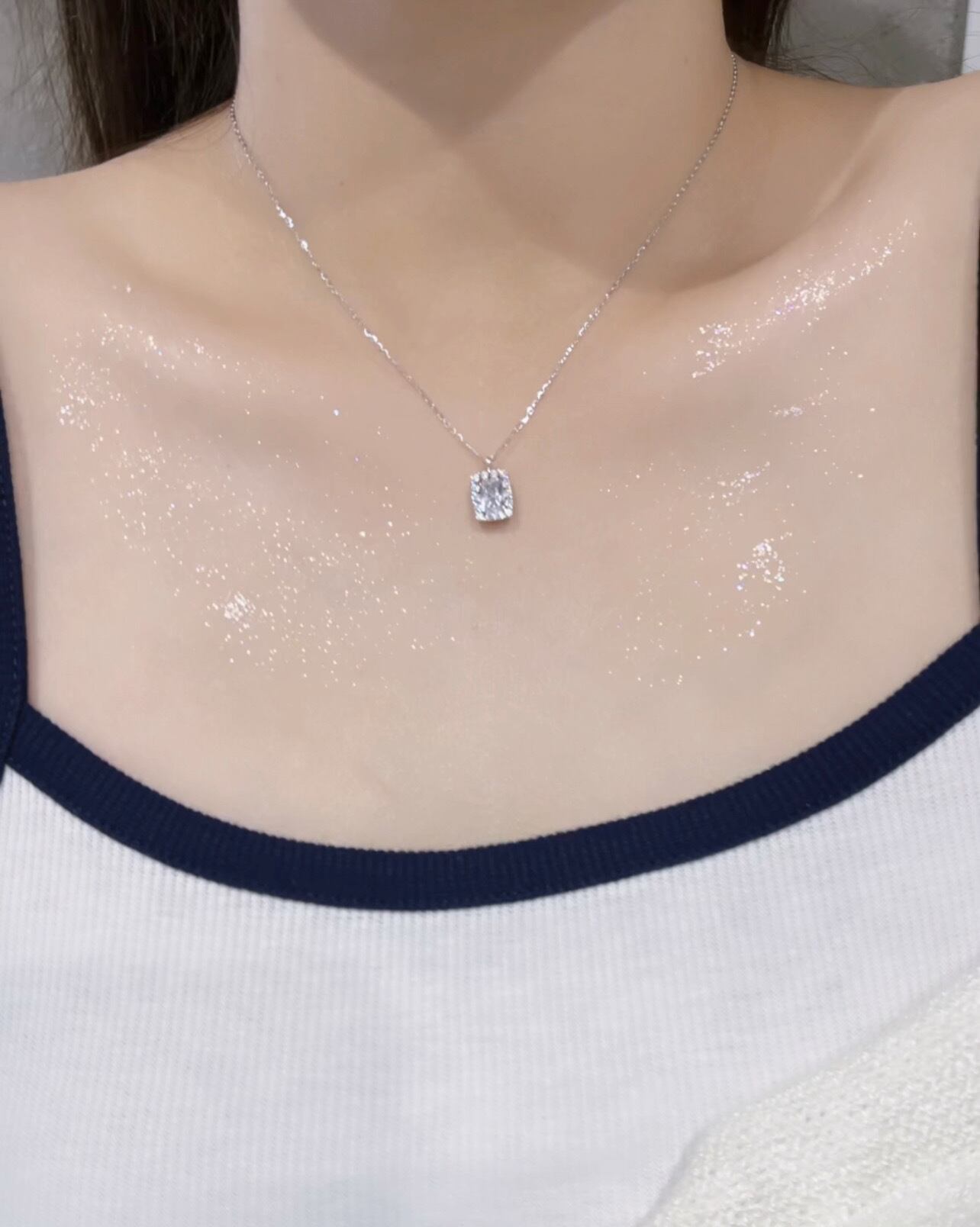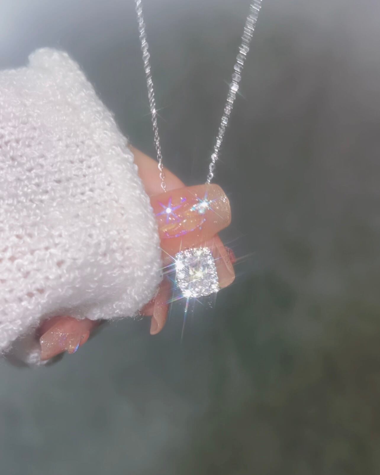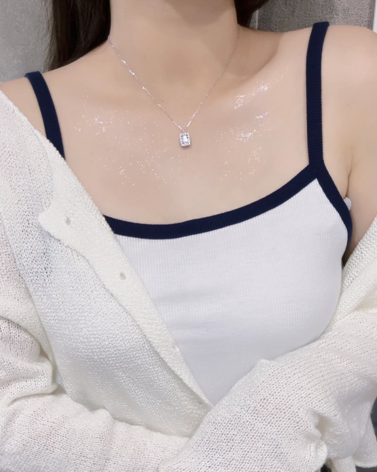 ジルコニアが施された美しいネックレスです。肌に優しく、日常から特別な日まで幅広くご使用いただけるスキンジュエリーとしておすすめです。輝きを放つデザインで、シンプルながらも存在感があります。