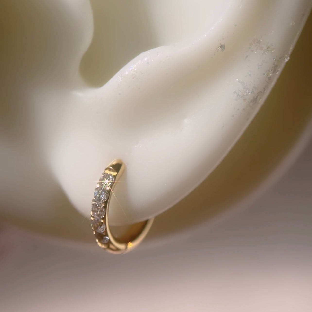 【商品説明】煌びやかで上品なデザインのフープピアス。キラキラと輝くストーンが華やかさを演出し、特別な日から普段使いまで幅広く活躍します。シンプルながらも一際目を引く存在感があり、どんなスタイルにもマッチします。