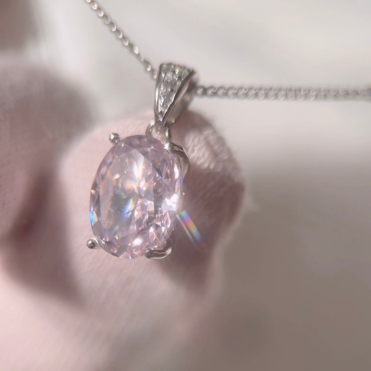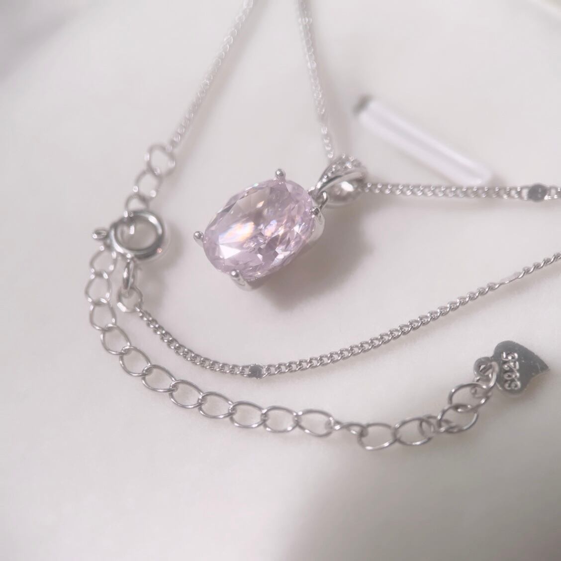 可愛らしいピンクのジルコニアが施されたネックレス。