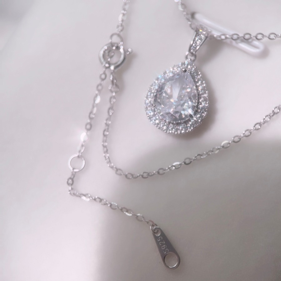 煌びやかで上品な大粒ジルコニアが施されたネックレス。キラキラと輝くストーンが華やかさを演出し、特別な日から普段使いまで幅広く活躍します。シンプルながらも一際目を引く存在感があり、どんなスタイルにもマッチします。