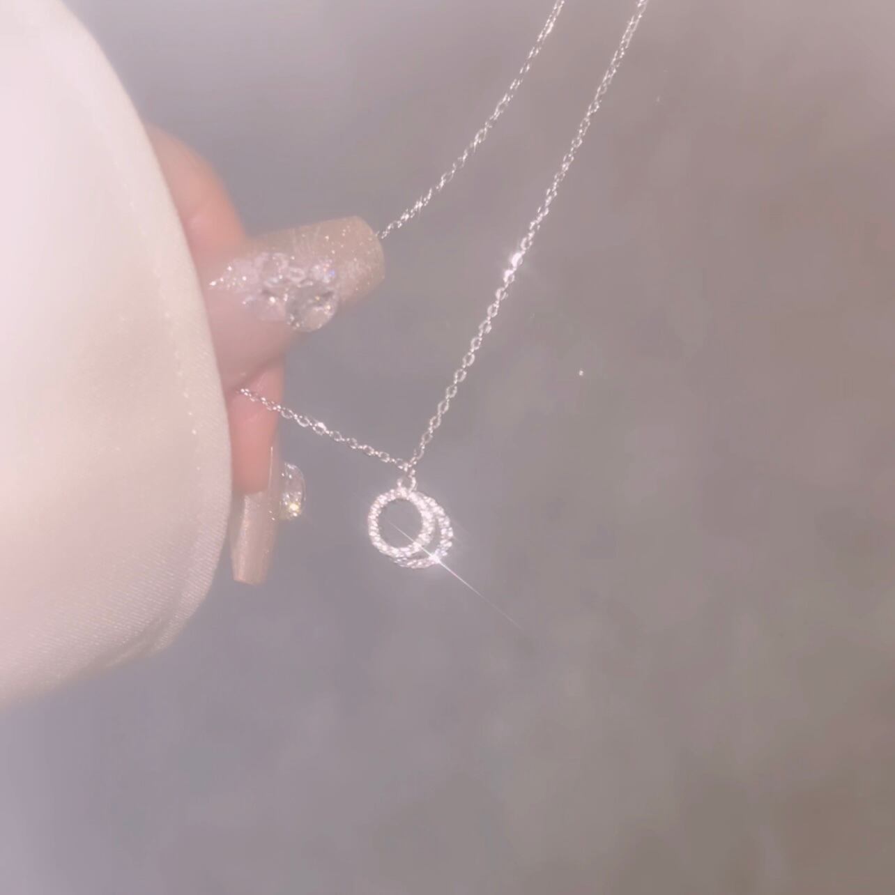 サークルが2連に重なる上品なネックレス。