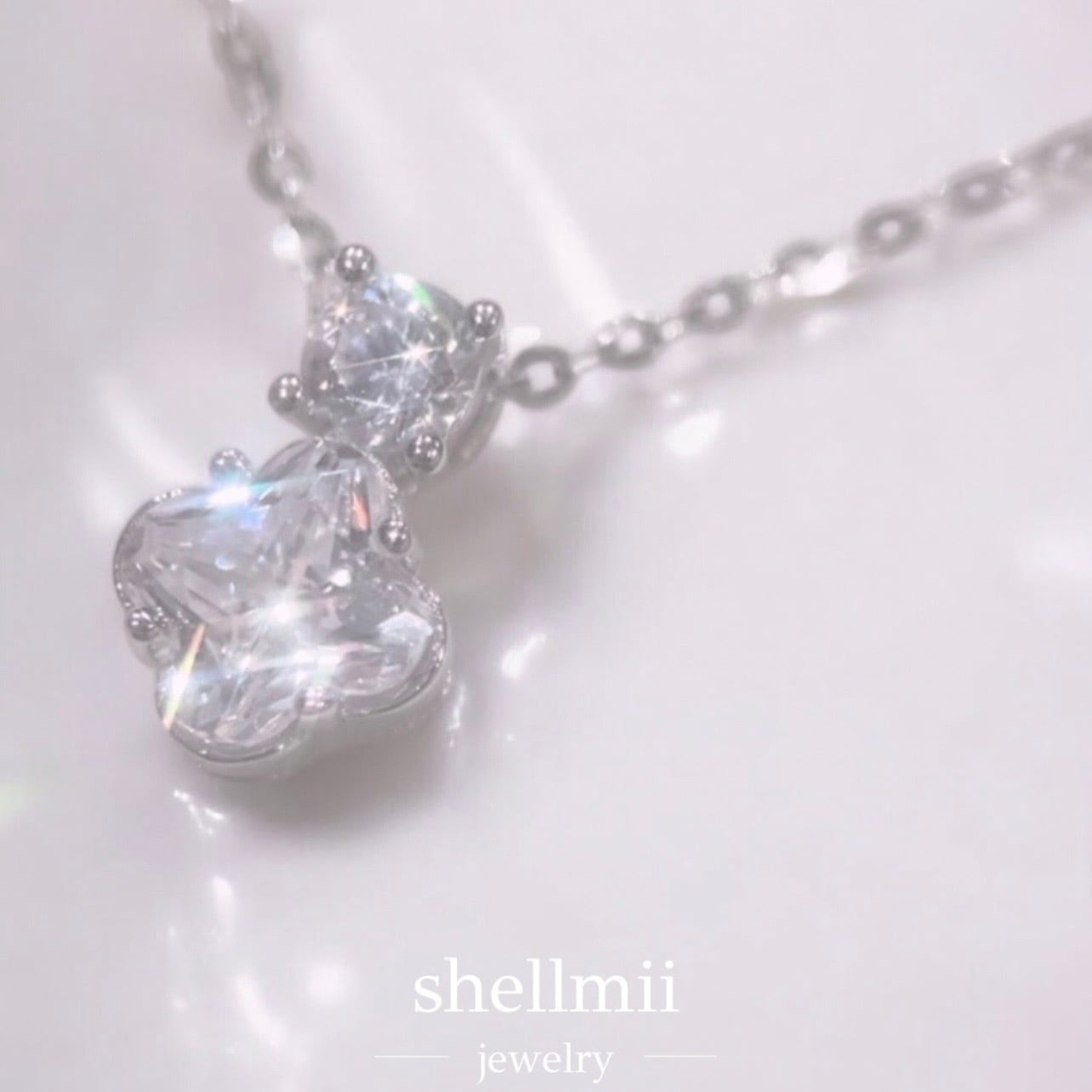 可愛らしいクローバーのジルコニアが施されたネックレス。