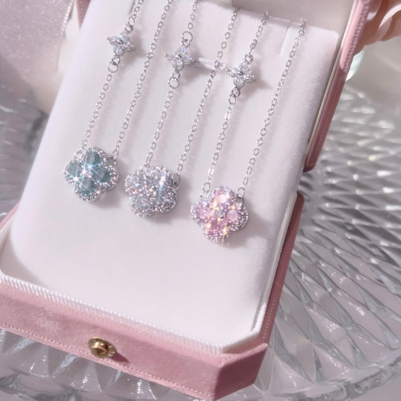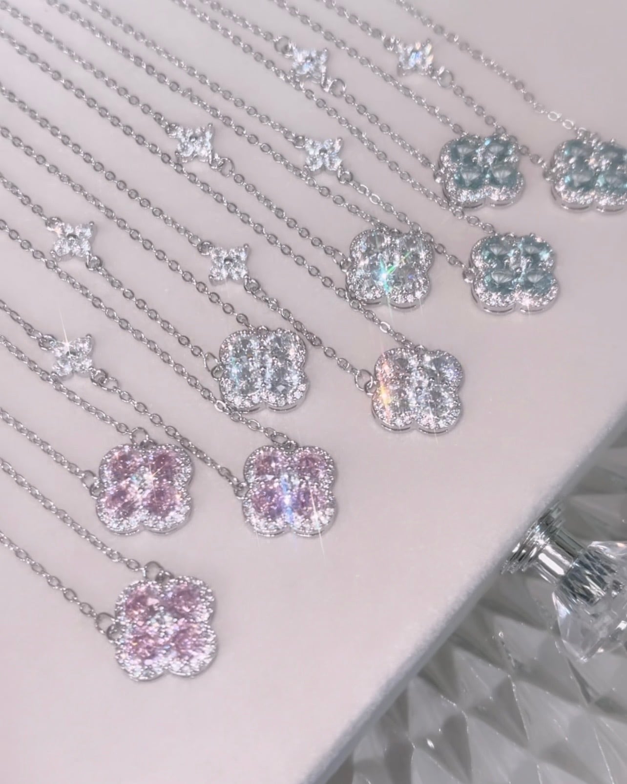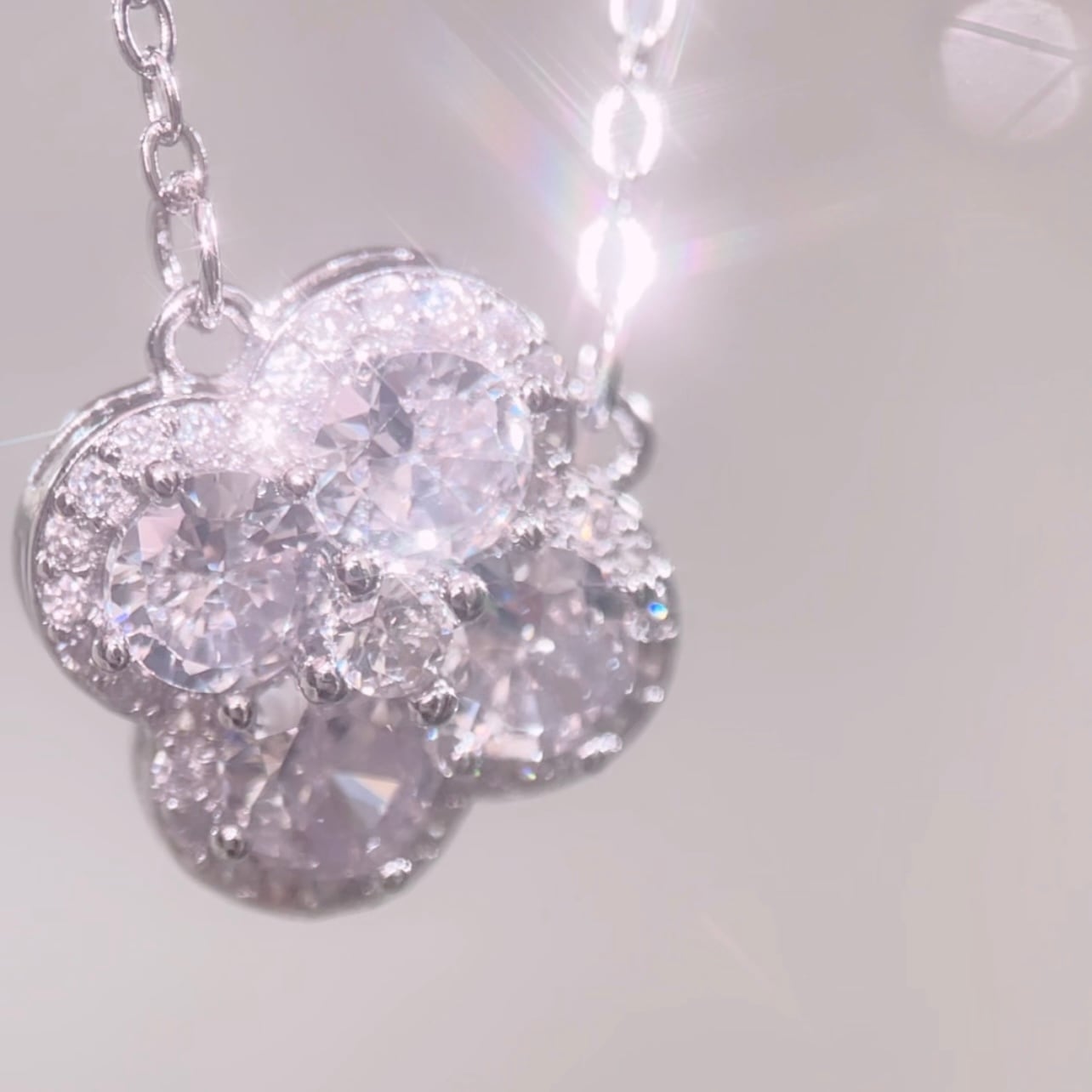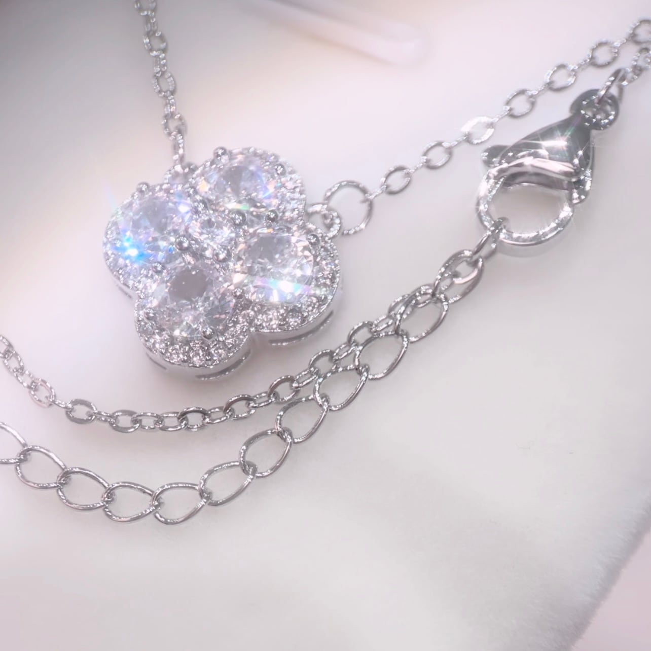四つ葉のクローバーモチーフにジルコニアが輝くネックレス。