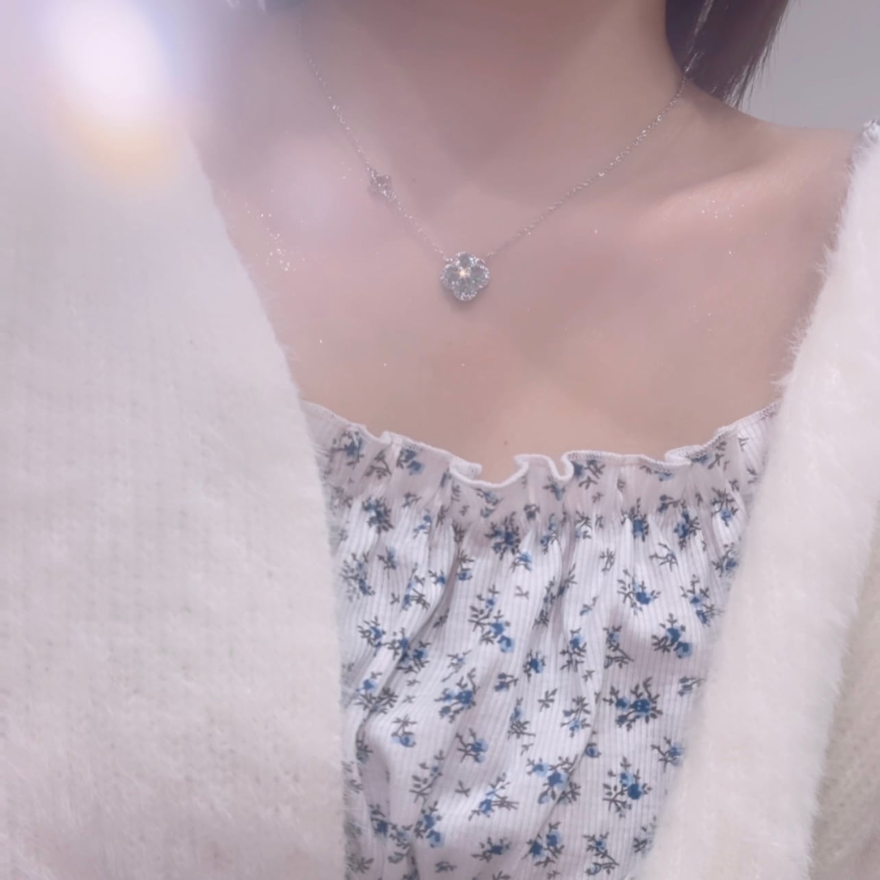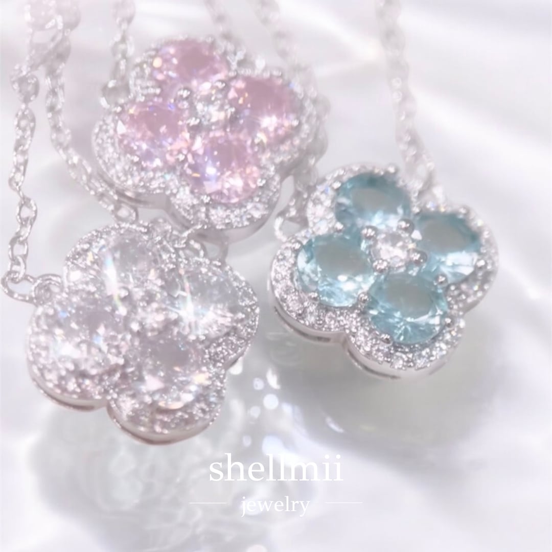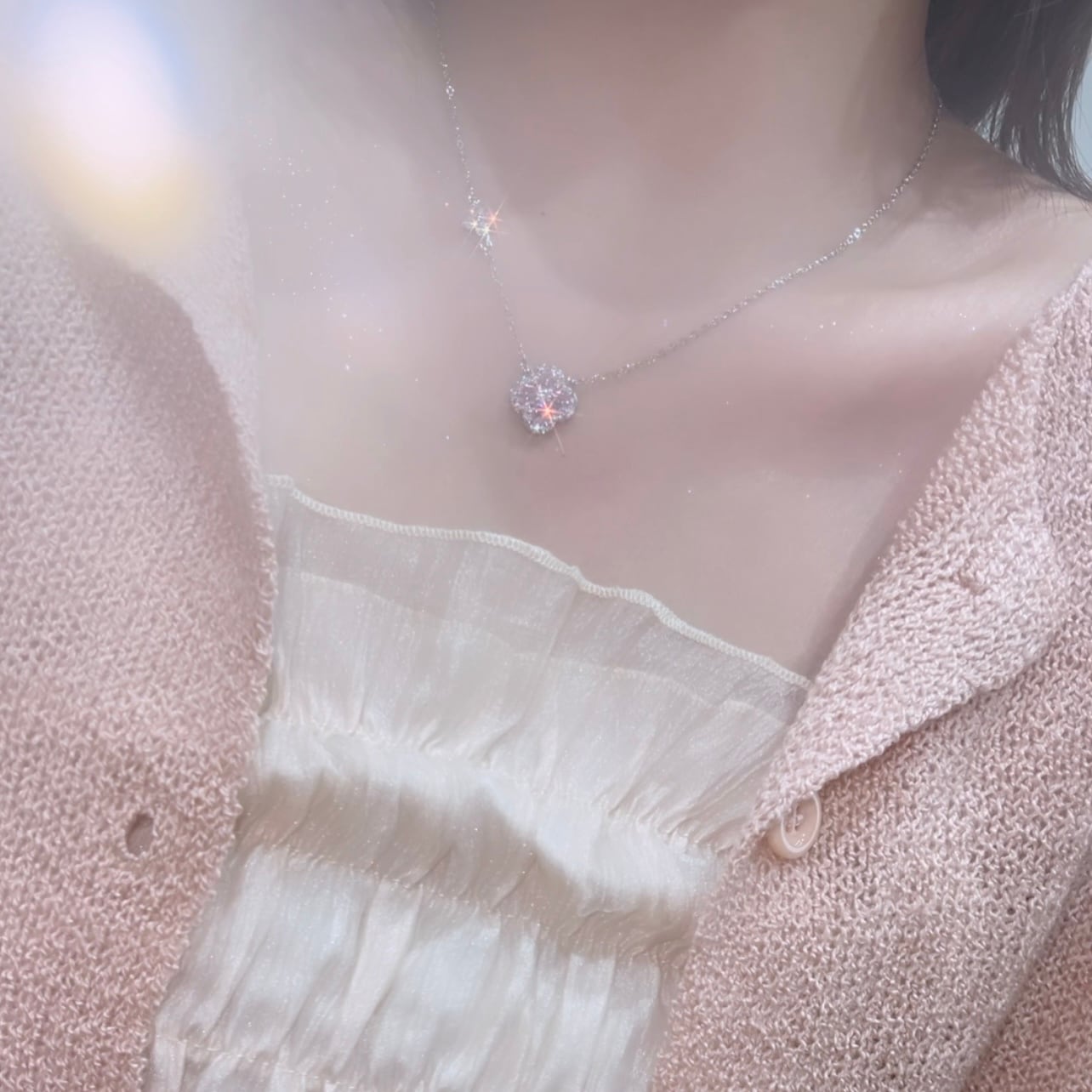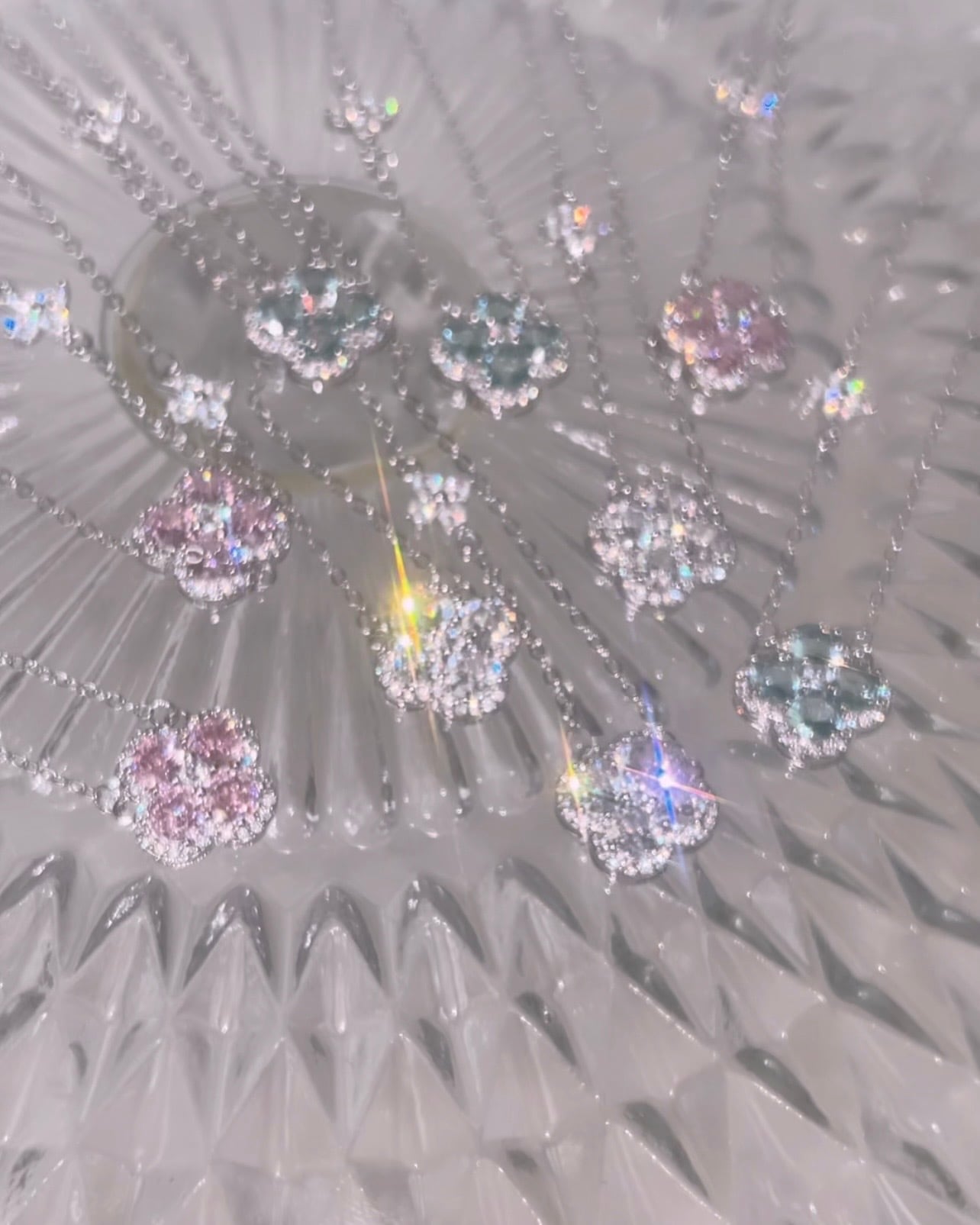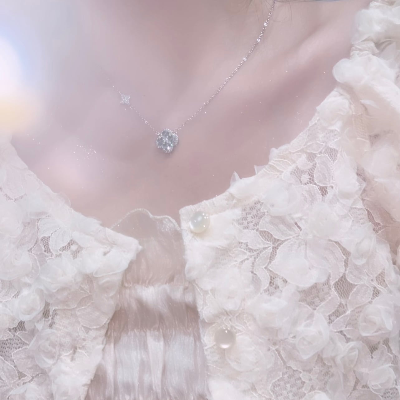 四つ葉のクローバーモチーフにジルコニアが輝くネックレス。