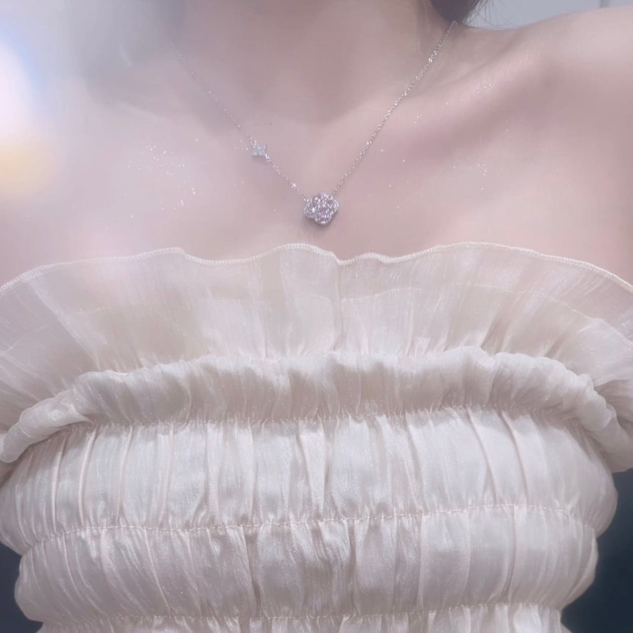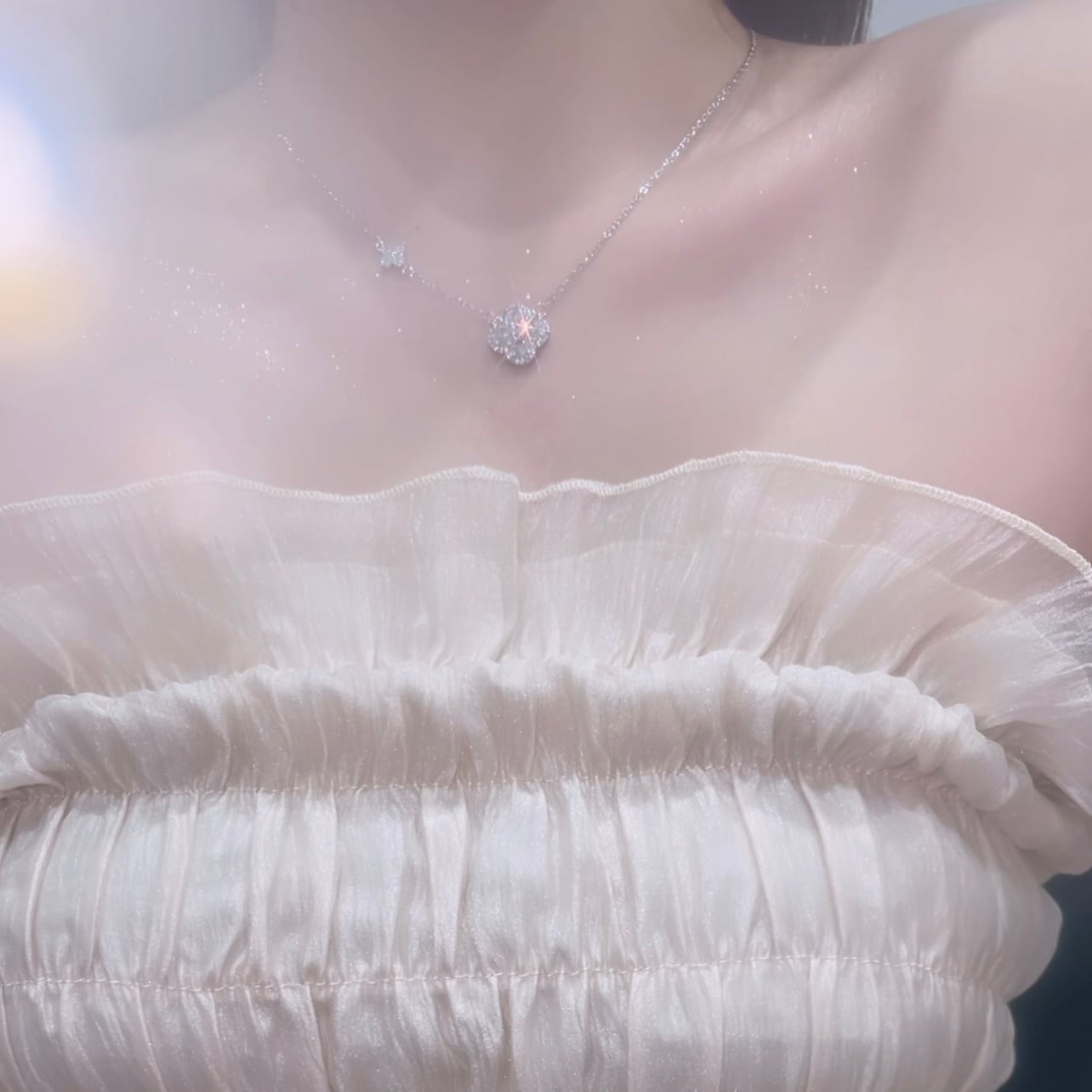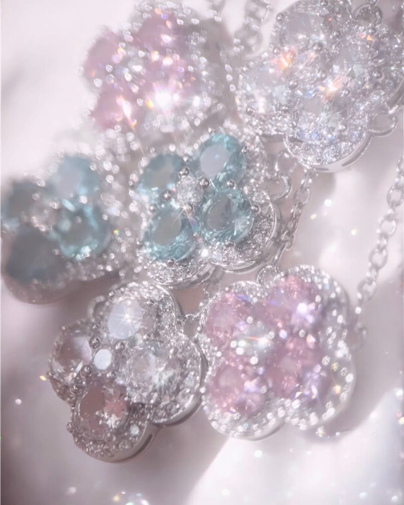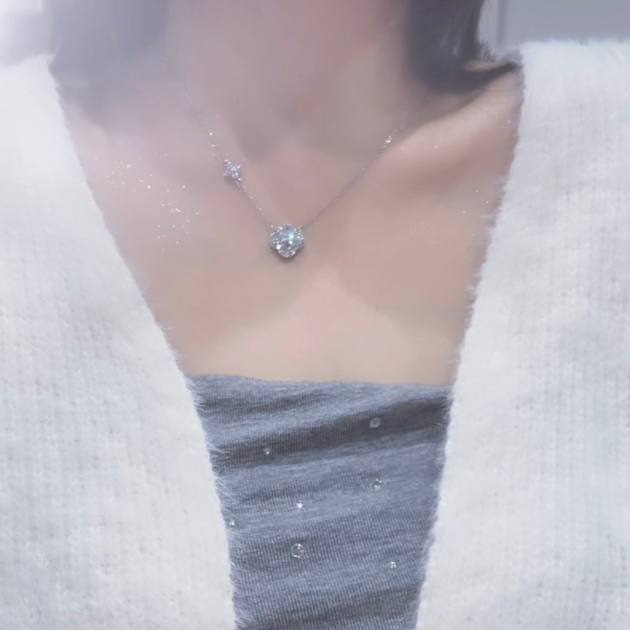 四つ葉のクローバーモチーフにジルコニアが輝くネックレス。