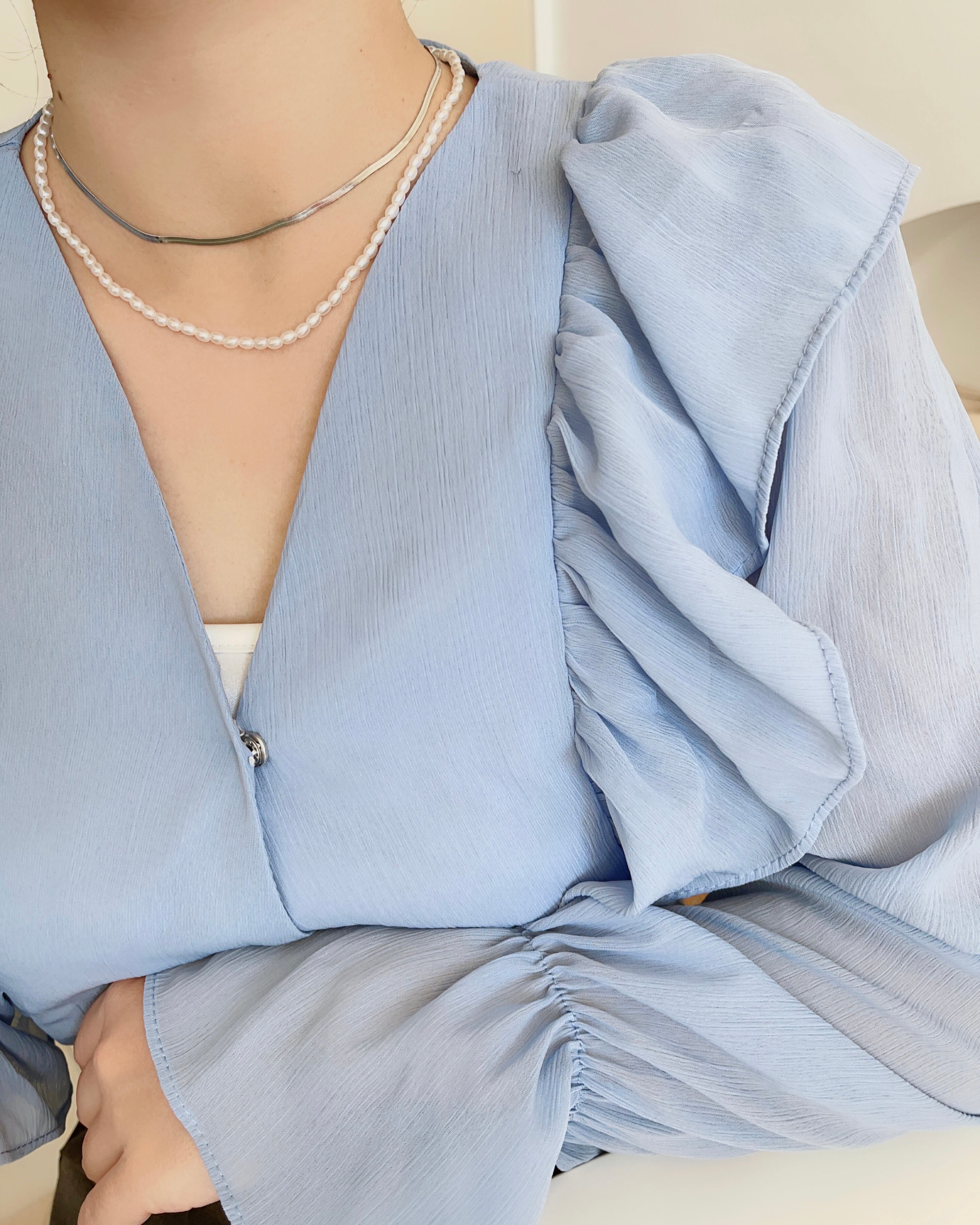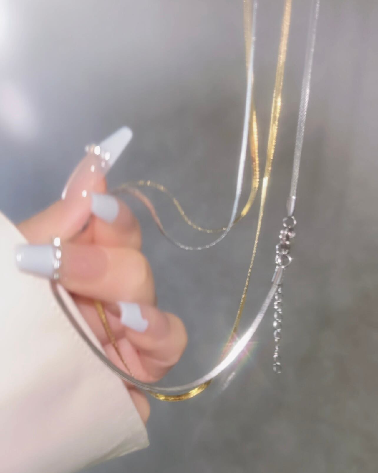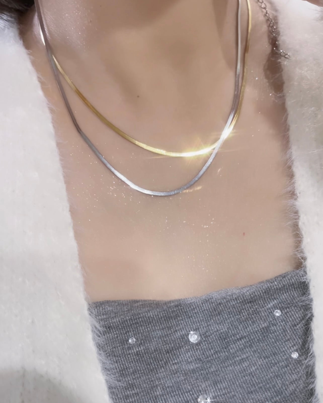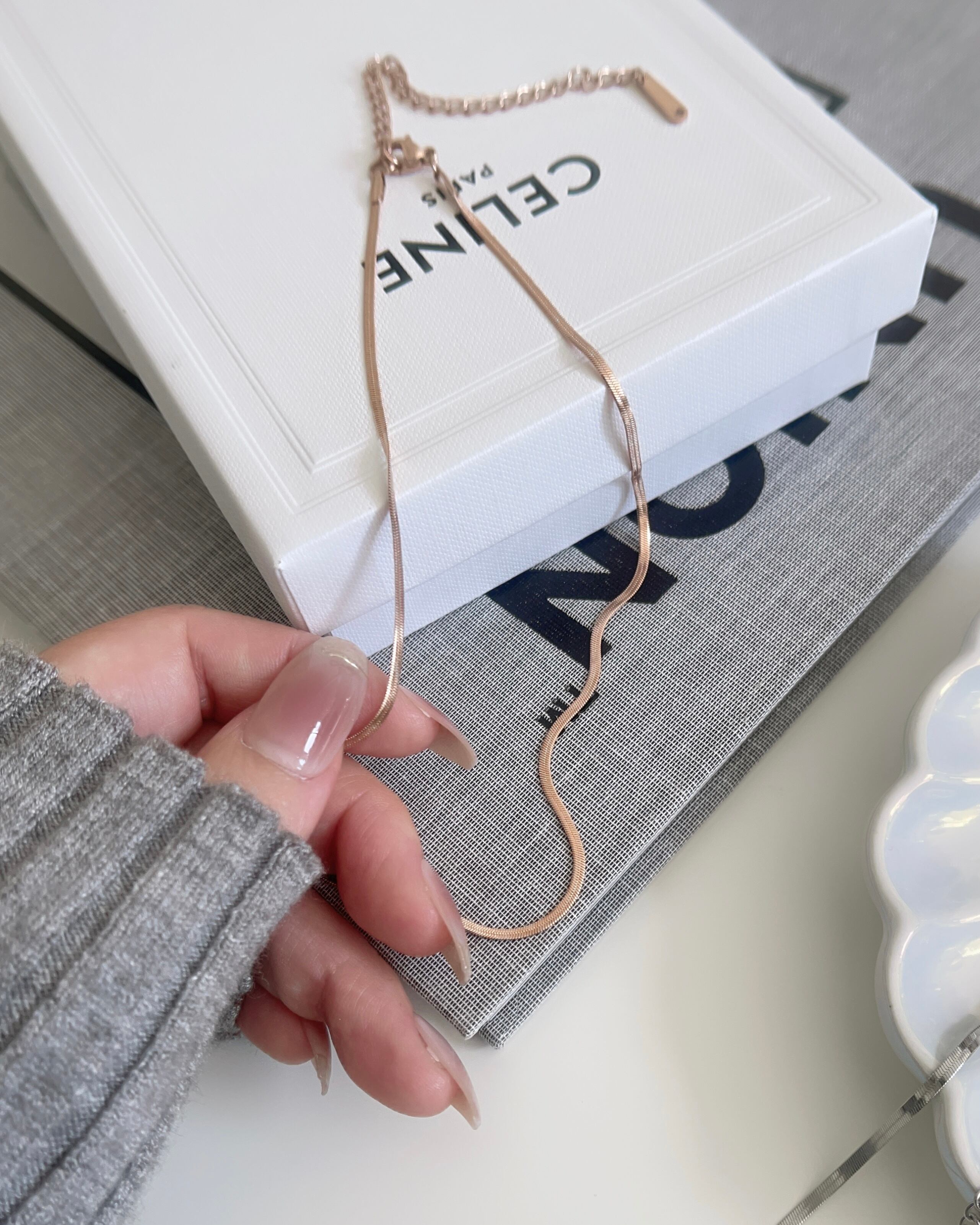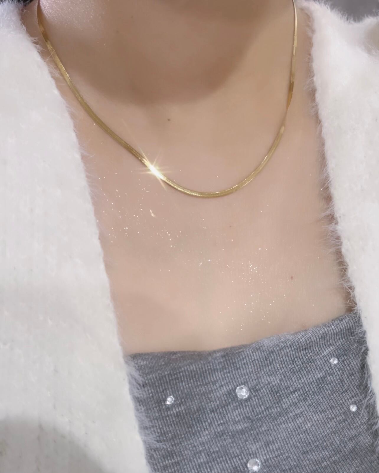 幅2㎜のスネークチェーンが存在感ありながらも上品なデザイン。光が当たると煌めきます。
