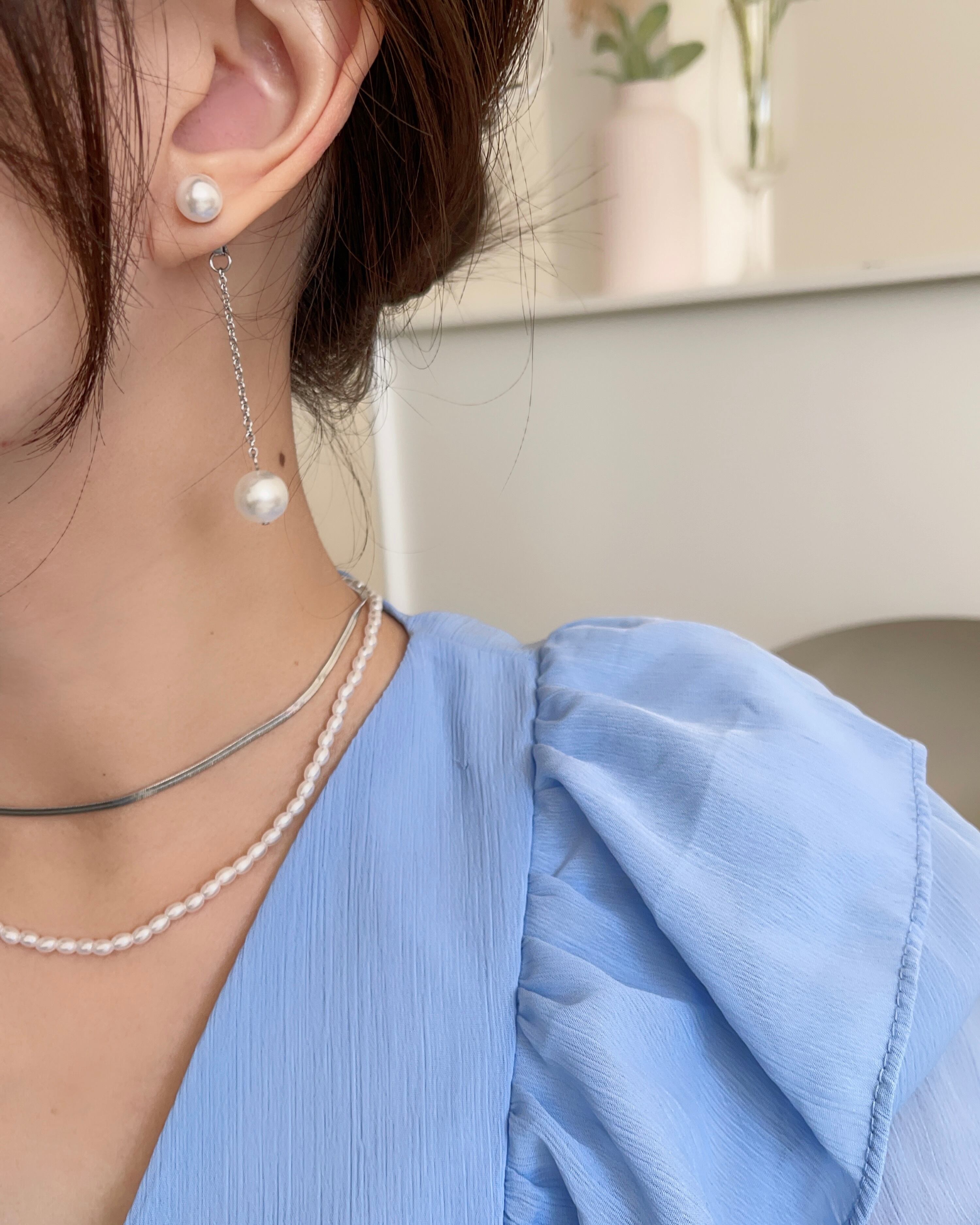 サージカルステンレス製のアクセサリーはサビや変色に強く、お肌にも優しい素材です。